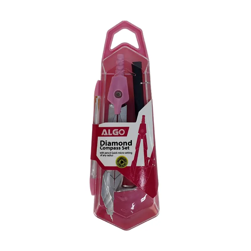 Coffret compas Diamond automatique à ouverture rapide. Précision et qualité constantes. Auto centrage illimité. Couleurs: Rose ou Bleu et Noir.